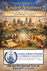 Greater Atlanta as a Kingdom Assignment (Jer. 29:7) “Seek the peace and prosperity of the city… because if it prospers, you too will prosper (Jeremiah